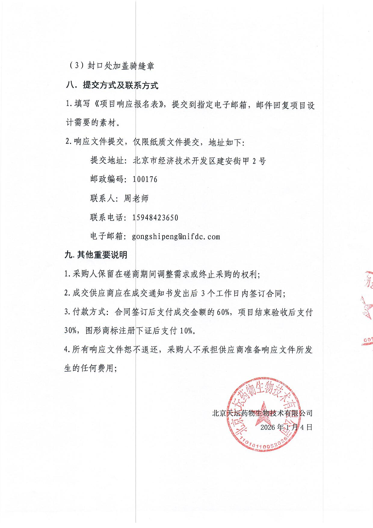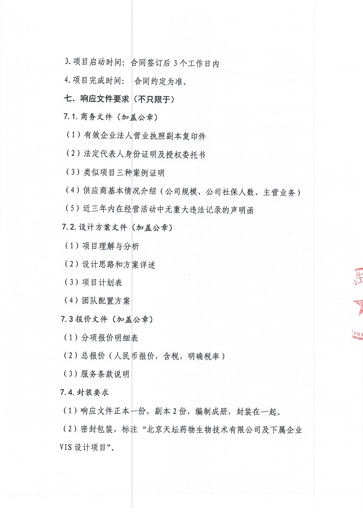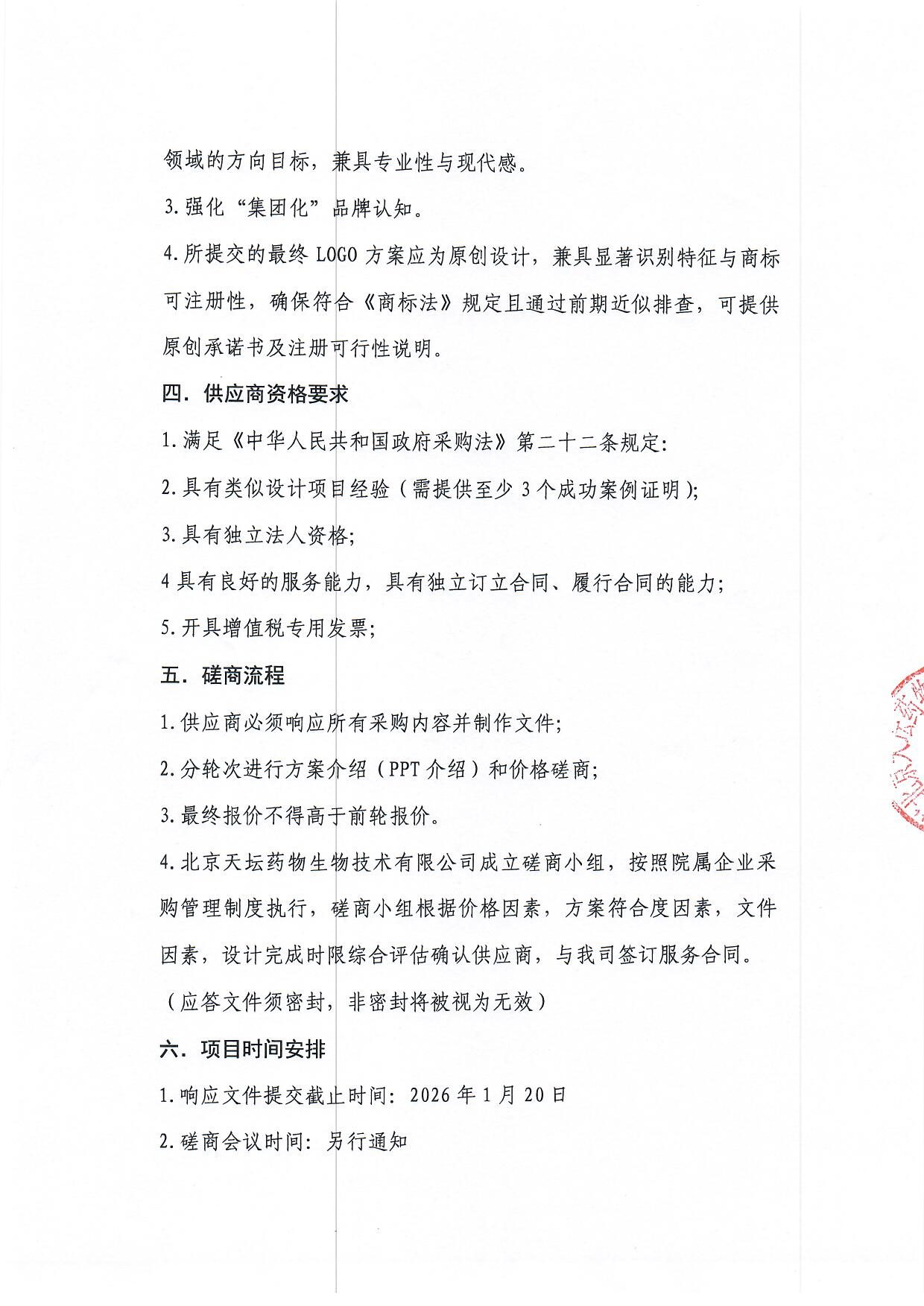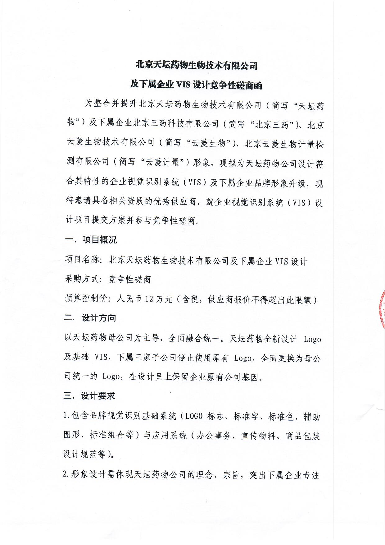 北京天坛药物生物技术有限公司VI设计竞争性磋商函