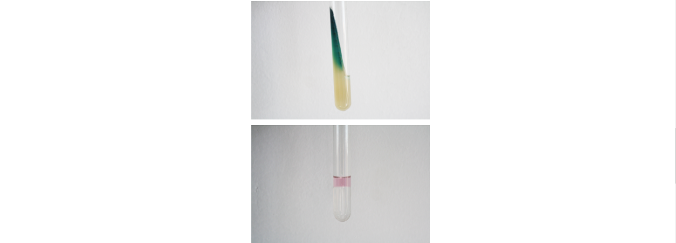 原理:铜绿假单胞菌能产生的绿脓菌素能被氯仿提取,且在水中溶解度比氯仿大,并且会发生可逆的氧化还原反应,氧化时碱性呈蓝色,酸性呈红色。所以加入盐酸溶液并震摇后,绿脓菌素会由氯仿转移至盐酸溶液中,并在酸性环境中呈红色。