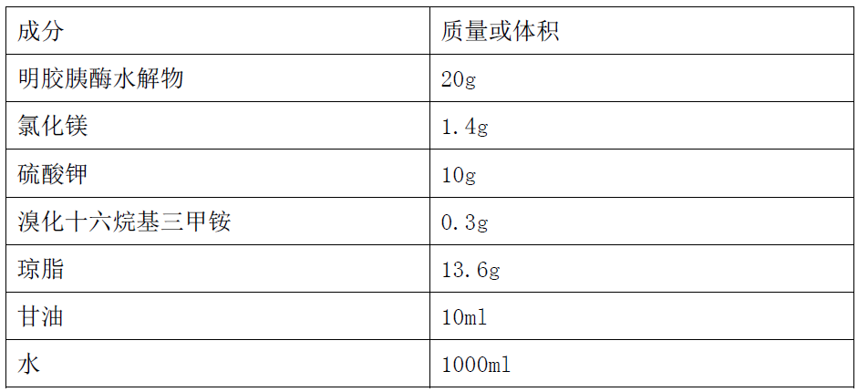 (1)营养成分:铜绿假单胞菌分解蛋白质能力较强,而发酵糖类能力较低,在培养基组分中明胶胰酶水解物和甘油为铜绿假单胞菌的生长提供碳、氮源、维生素和生长因子。