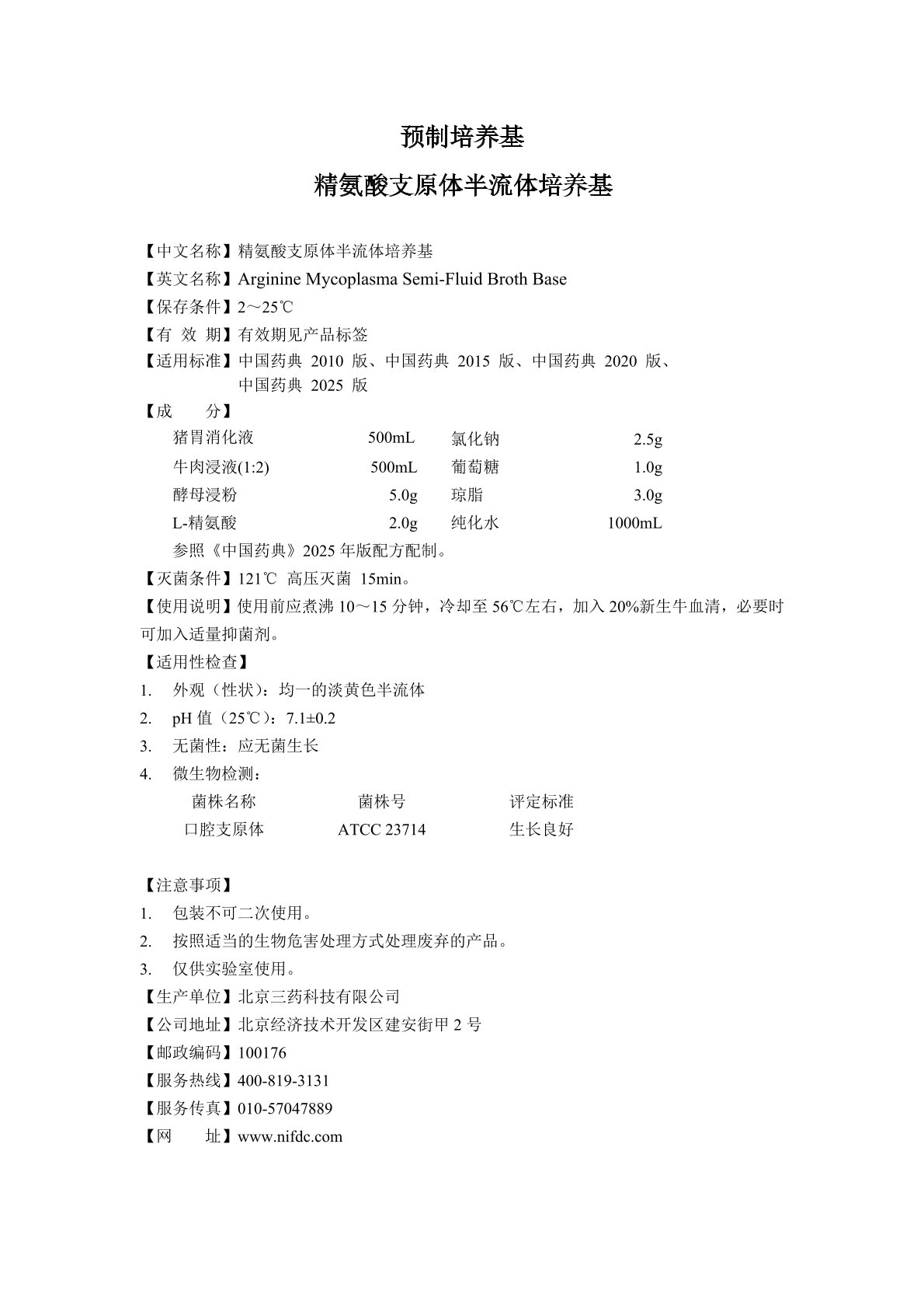精氨酸支原体半流体培养基